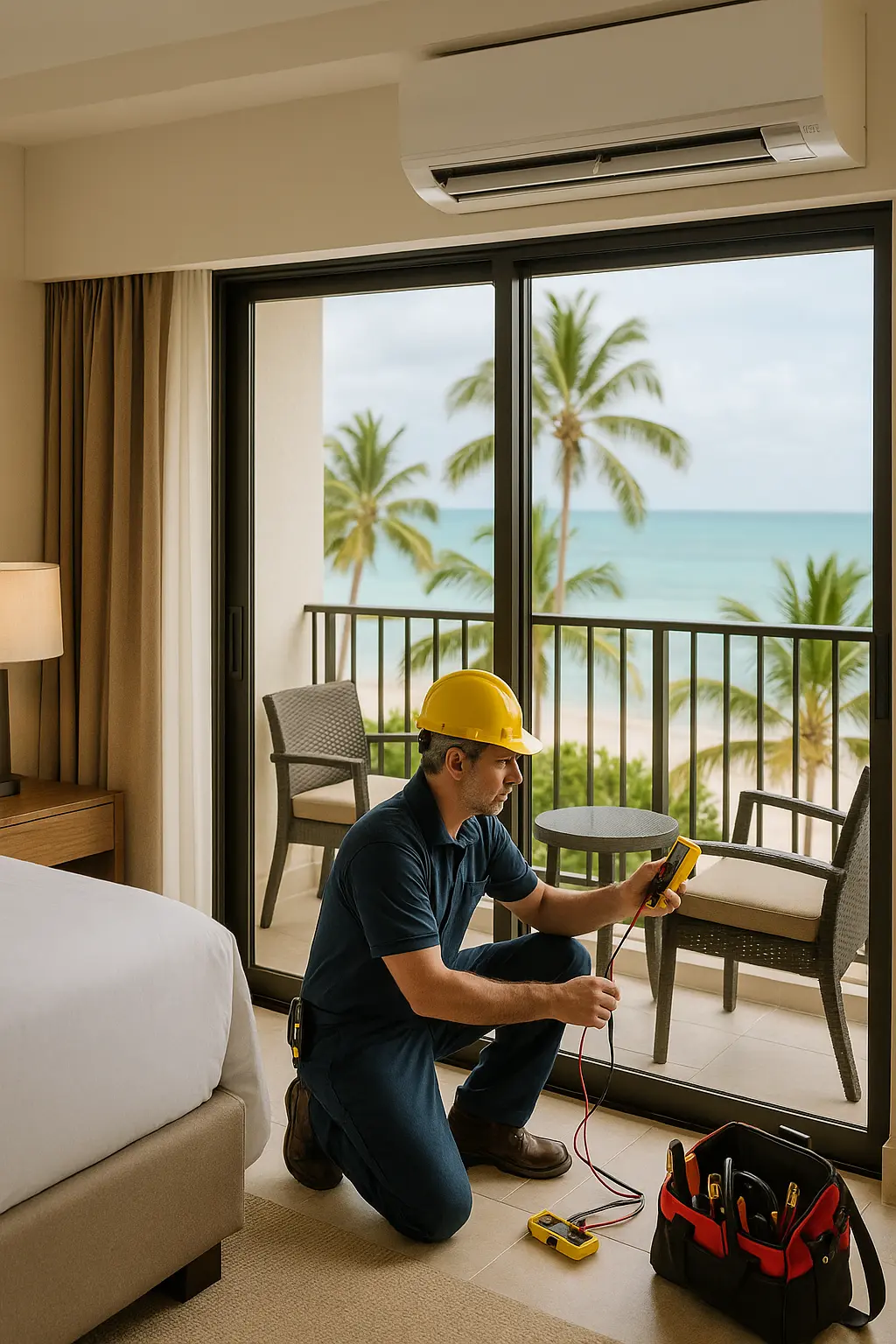 Nuestro equipo de ingeniería y mantenimiento está listo para diseñar un esquema de servicio flexible y a medida. Cuéntenos los detalles específicos de sus instalaciones, sus desafíos operativos y las prioridades de sus huéspedes. Juntos, crearemos el plan de mantenimiento perfecto para preservar su inversión y garantizar la excelencia continua de su hotel.